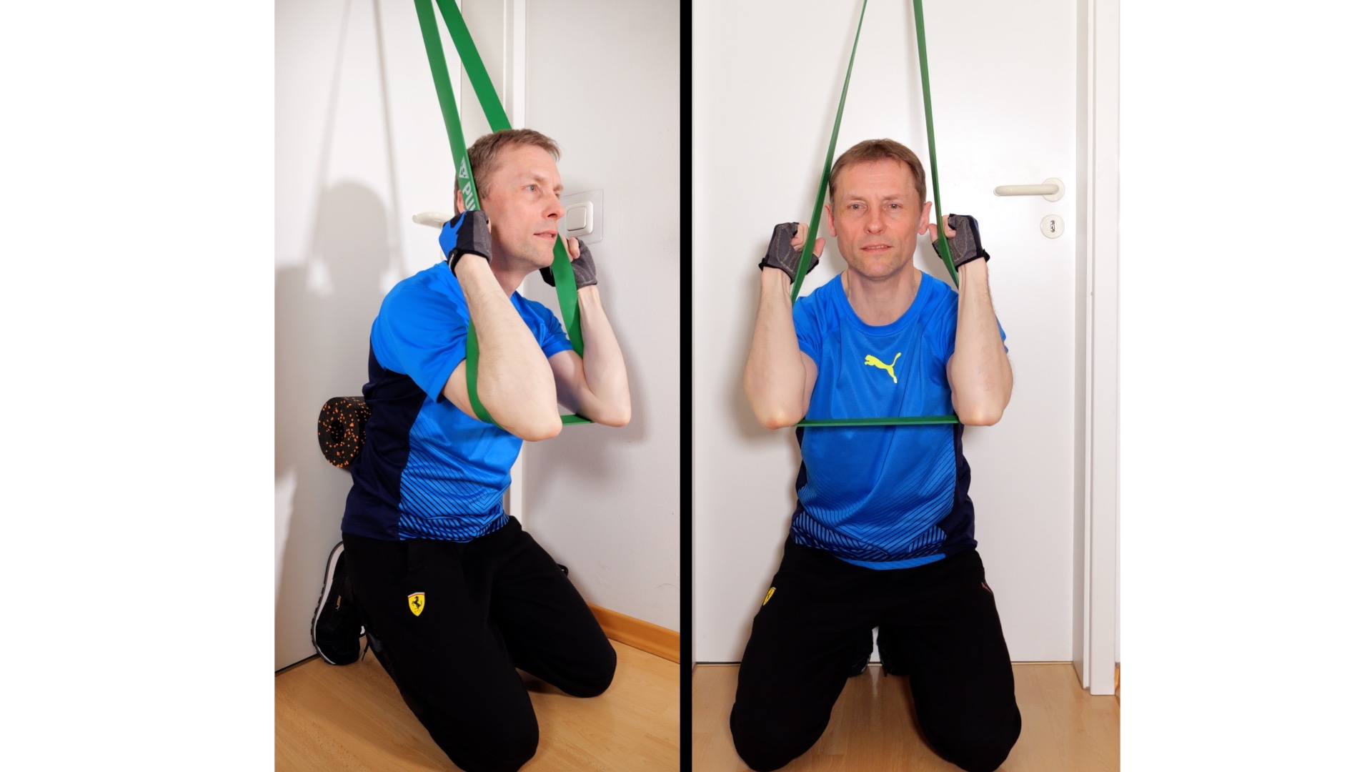 Widerstandsband, Türanker, Karabiner, optional Faszienrolle