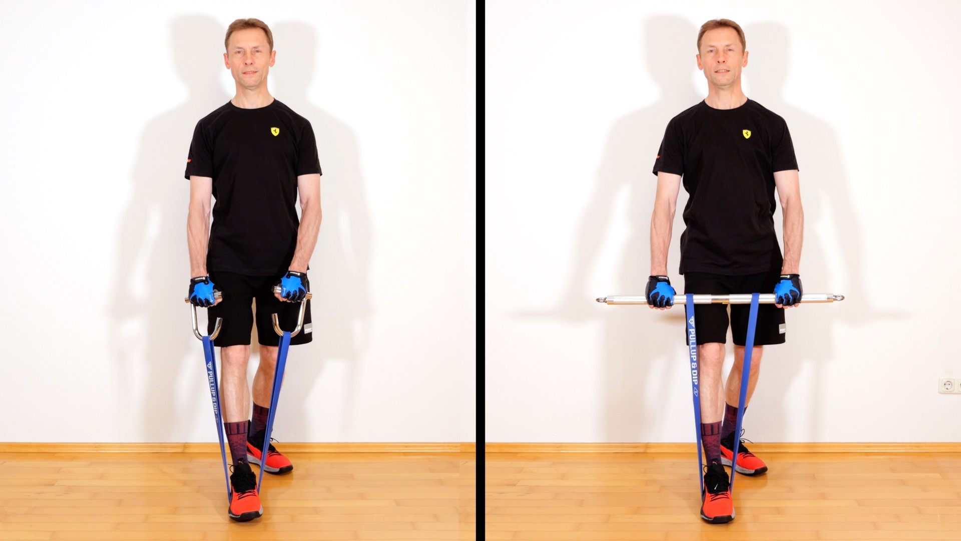 • Stahlgriffe an beiden Enden des Widerstandsbandes befestigen.