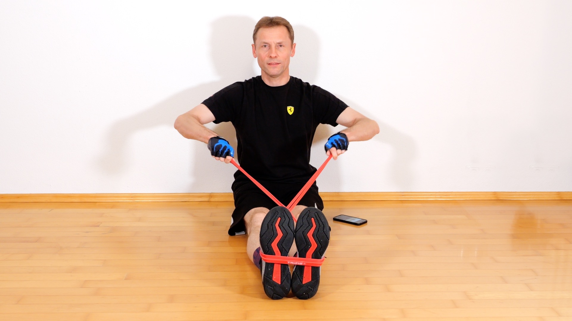 Weites Rudern im Sitzen mit Widerstandsband | Obere Rückenmuskulatur trainieren